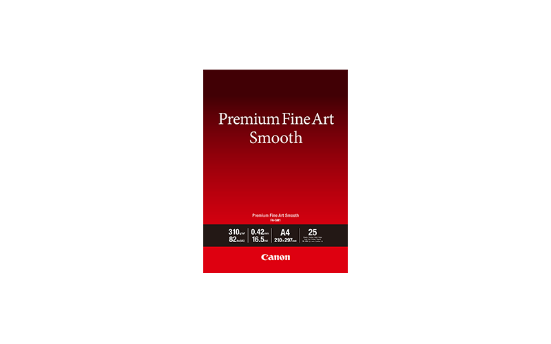 Бумага для художественной печати Premium Fine Art Smooth разработана таким образом, что пигмент чернил закрепляется максимально близко к поверхности бумаги, создавая насыщенный черный цвет на отпечатках. А вместе с оригинальными чернилами LUCIA PRO от Canon с оптимизированным составом цвета получаются еще более насыщенными, а оттенки черного — более глубокими.